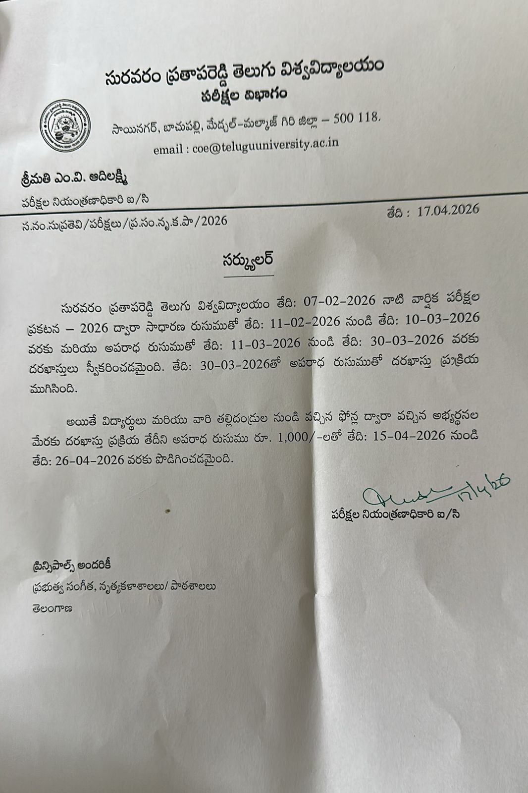 and From 11th Mar 2026 to 14th Apr 2026 (With Late Fee Rs.1000/-).